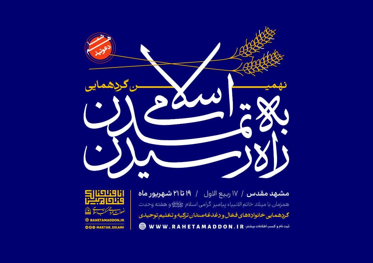 نهمین گردهمایی خانوادگی «راه رسیدن به تمدن اسلامی» در مشهد مقدس از تاریخ 19 تا 21 شهریورماه که مصادف با هفته وحدت و میلاد پیامبر گرامی اسلام صلی الله علیه و آله است برگزار...